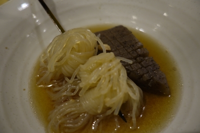 到着したら結構忙しそうでしたので、そういう時は生ビールだけお願いしておでんをつまみます!おでんは一言言えばセルフで取り分けることも可能ですよ!この日は大根とこんにゃくとしらたきをいただきました!