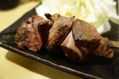 そしていつもの串を!まずは白肝を塩でいただきます!う〜ん、おいしいですね!とろけるおいしさです!焼き加減といい塩加減といい私好みです!