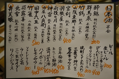 さあ、まず生ビールからいただきました!ふとドリンクメニューをみてみると、、、え?!生ビール300円?ほんとっすか?8が3に見える的な、、、私もついに老眼か、、、と疑いましたが確かに300円!す、す、すごい!そしてこのビールがと〜ってもおいしい!すばらしいです!