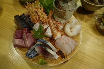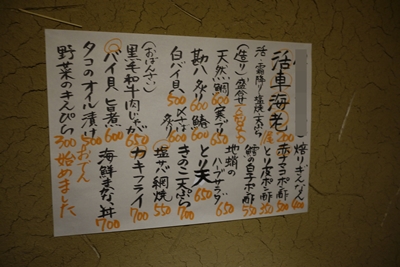 メニューをみてみると、こちらもリーズナブルですね!活車海老がおすすめのようですので、そちらとお刺身を盛り合わせで、あと数品お願いいたしました。