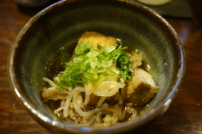 この日はちょっとしたことがありまして時間がなくなって、先付けだけで私は失礼させていただきました。この先付けに登場したお揚げと糸こんにゃくの炊いたんがほんとおいしい〜!冷たくなった体を温めてくれました〜!