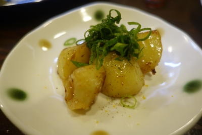 最後は唯一メニューからお願いした新じゃが酒盗バター焼きです!先日新じゃがの仕込をされていたときに一口新じゃがをたべさせていただいたのですが、とってもおいしくってびっくりさせてもらいました!なのでメニューにアップされていたので飛びつきました!一口いただくと、、いや〜!おいしい!最高でした!