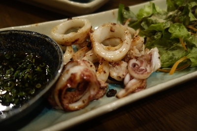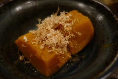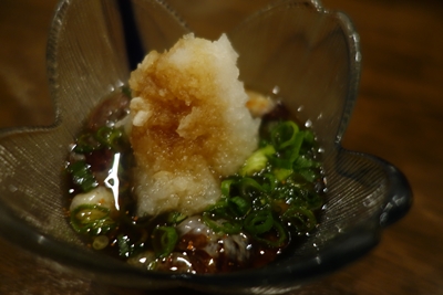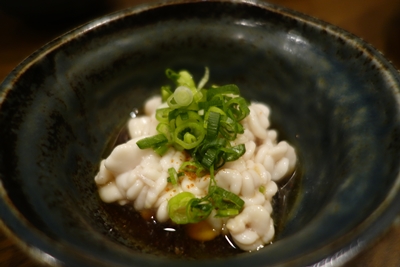 奥の座敷を貸切ました!まずは生ビールで乾杯です!クリスマスイブの生ビールはおいしいですね〜!付きだしは白子とかぼちゃでした〜!