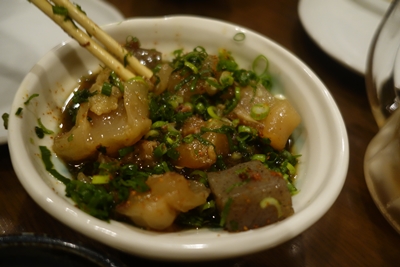 続いて人気メニューの牛筋の煮込みが登場しました!たっぷり一味をかけていただきます!うまい!