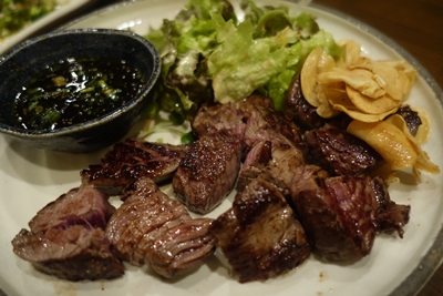 ここで大人気メニューのヒレステーキが登場しました!もうこれは抜群においしいです!やわらかいですよ〜!焼き加減が抜群!