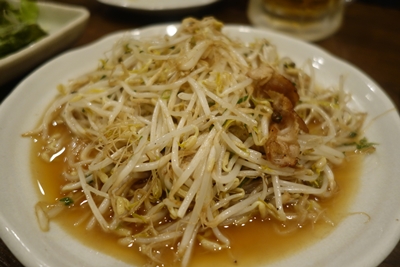 牛ホルモンとイカをいただいた後は、〆として、、、、、もやしいためです!先輩が大好きな春来さんのもやしいためは〆としていただいています。シャキシャキ感が半端なく食欲をそそりますよ!
