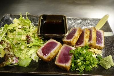 つづいていただいたのがマグロのパン粉焼き!こちらは初めていただきました!おいしそうなマグロが綺麗な鉄板の上で焼けていく過程をみるだけでとってもおいしそう!一口いただくと、うわ!これはおいしい!同級生がチョイスしてくれたのですが、人の嗜好に合わせてみるのもいいもんですね〜!