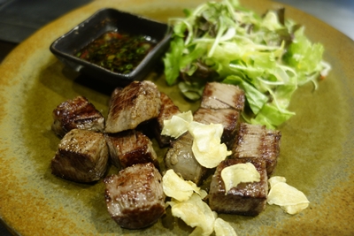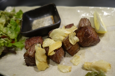 ここで定番メニューのヒレ肉をいただきました!安いしおいしいし、このコストパフォーマンスはほんと優れていますね。黒毛和牛ではないので、脂身もほどほどになっていてほんと食べやすい!あっというまに食べ切っちゃいました!このころにはシャンパンもなくなり、生ビールに移行しています。