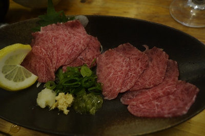 つづいて千本筋の刺身をいただきました!千本筋ってなんだろう?外モモ肉のハバキという部分にある超希少なスジ肉なんだそうです!スジ肉だから固いのかなと思いつついただいてみると、、、さすが、、固いわけないですよね!Centさんでそんなお肉がでてくるわけないですよね!超やわらかくておいしい〜!