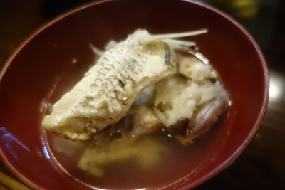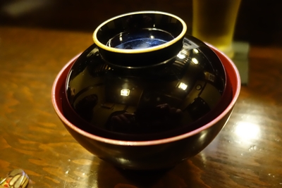 おっ!椀物ではないですか!なんだろう〜と期待を胸に膨らませながらあけてみると、、、なんとそこには!鯛の潮汁ではないですか!きゃ〜〜〜〜!2軒目で訪れた私にとっては最高のおもてなしでございます。うれしいですね〜!もちろん超おいしいです〜!鯛からとってもいい出汁がでていますね〜!