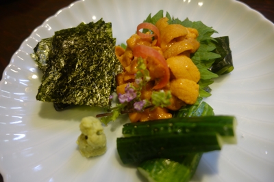 ちょっとつまみたいな〜ということで、生ウニをお願いしました!えび一さんの生ウニはかなりすごいウニですからね〜。メニューに載っている値段はほぼ原価に近いんです。ここだけの話ですが。なので生ウニは超お徳ですよ〜!(あっ、、、ばらしちゃった!!!)
