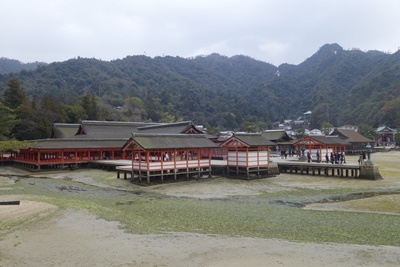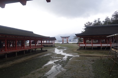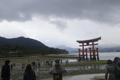 厳島神社の鳥居をみながら、ぐるっと散策させていただきました!ちょうど干潮だったために、鳥居のもとに歩いていかれた人がたくさんいらっしゃいましたよ〜!これも宮島の名物の一つですね!