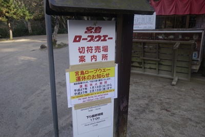 あっ!!!!宮島ロープウェーは1月13日から2月13日まで、、、運休でした!そういえば、、、会社に案内が来ていたような、、、、