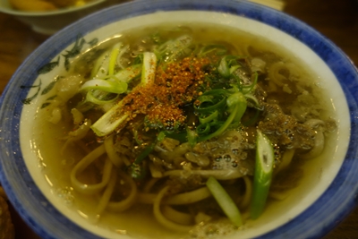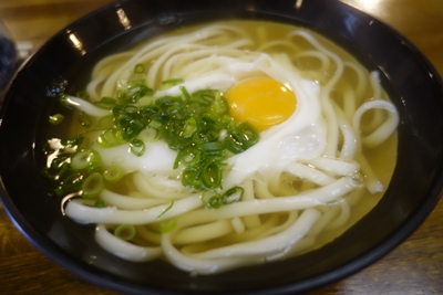 待っていると、うどんが登場しました!麺はやわらかめです。出汁はしっかりした味でとってもおいしい〜!2杯でも3杯でもいただけちゃうおいしいうどんなんです!