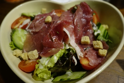 つづいてシーザーサラダをいただきました!生ハムがたっぷりのってる〜〜〜!器がハートの形なのがこれまたいいですね!