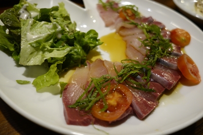 カンパチのカルパッチョをいただきました!知人の魚屋さんからいいのが入ったんだそうです!確かにおいしい〜!