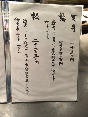 メニューは天丼と、梅、松、竹のコースがあります!この日は奮発して松コースにしてみました!