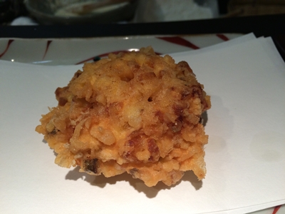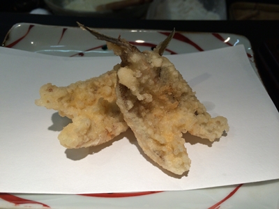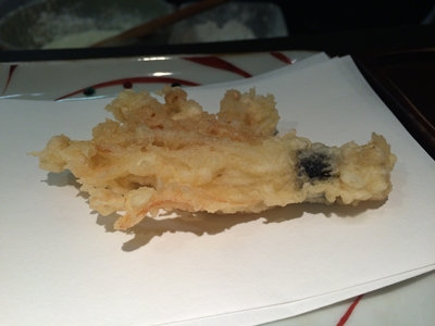 えのきをいただくと、最後はかき揚げが登場しました!丁寧に揚げられたかき揚げはとってもおいしいですよ〜!