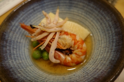 筍とエビと白魚が登場しました!白魚、今期初めていただきました!おいしいですね〜!さすが汐さんです!