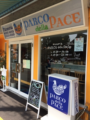 さて、今回はその平和公園の西側すぐのところにあるこちらのお店をご紹介いたします。お店の名前はPARCO della PACE パルコデッラパーチェさんです。ピザのお店ですね。