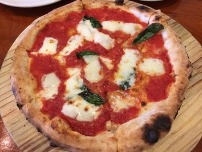 ここで、マルゲリータが登場しました!おいしそう〜〜〜〜!熱々のピザにオイルをかけていただきました!きゃ〜〜〜最高においしい〜!すばらしい〜〜〜!トマトソースといい、チーズといい、すばらしい!
