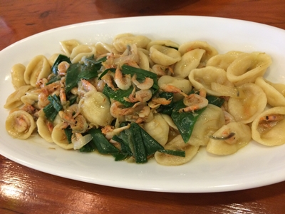 最後は桜エビのパスタをいただきました!オレキエッテという種類のパスタなんだそうですよ〜!こんなパスタは初めていただきます!いただくと、、、オイルがきいていますね〜!おいしい〜!桜海老の塩気がたまりません!もうめちゃうま!