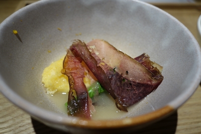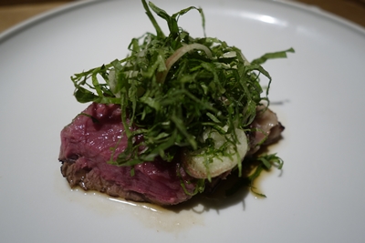 八寸が登場しました!広島は湯来のこんにゃくやアスパラ、筍、穴子!どれもいいお味ですよ〜!終わったと思ったら牛肉が!焼きたてで口の中でとろけました!