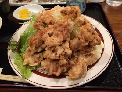 とり天定食も登場しました!ものすごいボリュームです!ほんとすばらしい〜!食べきれるかなと心配になってしまうくらいの量です!