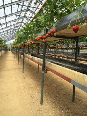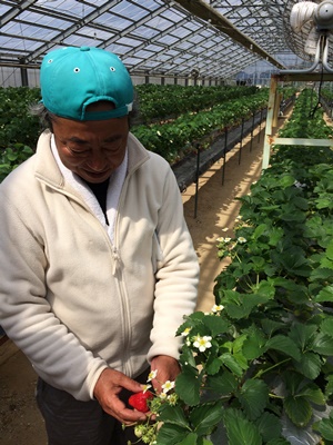 中に入るとおじさんが受付をしてくださいました!料金を支払うと係りのおじさんが説明をしてくださいました。なんと40分も食べ放題!これはじっくり楽しめますね!いちごの取り方もやさしく教えてくださいました。水耕栽培されていました!