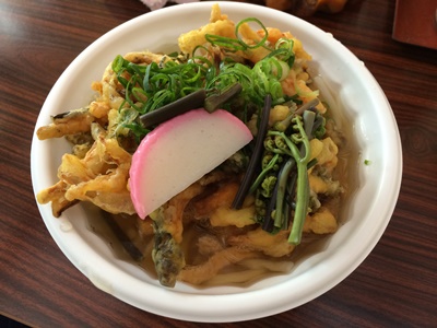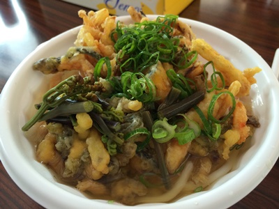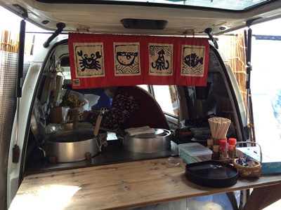 メニューを見ててんぷらうどんをお願いしました。あとおむすびと!移動式になっていて軽自動車の中で調理されるようです。奥様が中にのっていらっしゃってうどんを作ってくださいました。