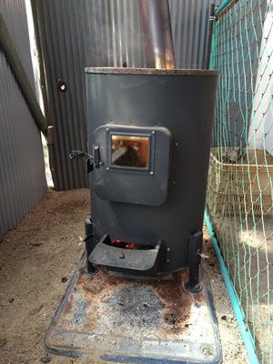 と迎えてくださいました。手作りされたと思われる小屋に入ると中にはなんと薪ストーブが!この日は寒かったので温まりました〜!