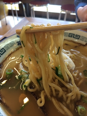 そこへラーメンが登場しました〜!おおお!いい香りです!麺をみてみると、、、うこんを練りこんであるかどうかは見た目ではわからないですね。でも、、いただくと!もっちもち!うこんのおかげなのかわかりませんが、もっちもちの食感がたまりません!おいしい〜!おいしくって長生きできるって最高じゃないですか!