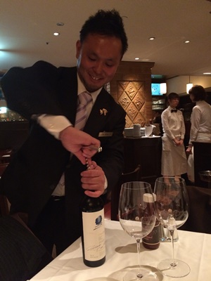 どどーーーん!登場しましたオーパスワン!なんとソムリエさんが自ら対応してくださいました〜!写メをとってもいいですか〜と聞くと快く応えていただきました。
