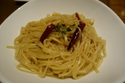 つづいてパスタを!クリーム明太子パスタ、ペペロンチーノをお願いしました!パスタがもっちもちでおいしいです〜〜!