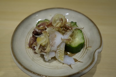 先付はさっぱりとイカのゲソを酢の物でいただきました。おいしいですね〜!先付でこんなにおいしいと思うこともなかなかありません。さすが!