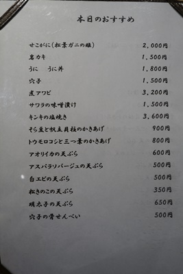 本日のおすすめメニューを見てみると、なんとせこがにが!あれれ?!ここって天ぷら屋さんですよね?!