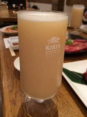 と先輩がおっしゃって、、、登場したのが、、、ん?!なんだろう、、、飲んでみると、、とっても飲みやすい、、、、聞くと、、、生ビールとマッコリのハーフハーフなんだそうです!まろやかでこれはおいしい〜〜〜!
