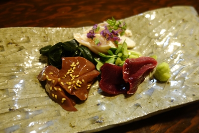 さて、さきほどのポークアンドチキン江田島さんの朝〆した名古屋コーチンの続きです。この日は親しくさせていただいている陶芸の先生においしいものを食べていただきたくって、えび一さんで名古屋コーチンをフルコースでお願いしておりました。大将ありがとうございました!