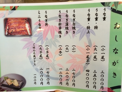 メニューをみていると、お店の方がお茶をいれてくださいました。うな重は3つあったので、真ん中の特をお願いしました。大きいうなぎが一尾だそうです。