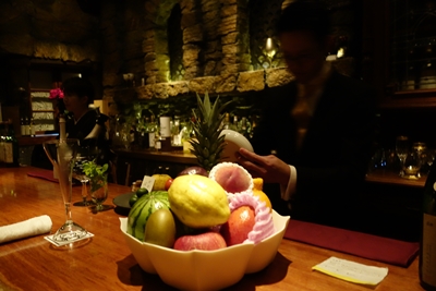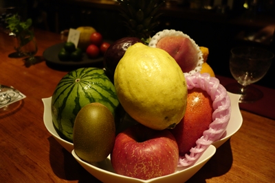 カウンターにはフルーツが美しく盛られていました。その中のひとつ、、イエローのフルーツはなんだろう、、、