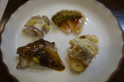 先付けはとり貝、かんぱち、しゃこ、ささみだったかな。どれも本当においしいですね〜!幸せな気分になれますね〜!
