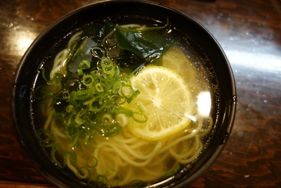 少しして登場したラーメンがこちら!スープがすんでいる!!もしや、、、いただいてみると、、、うわ〜〜〜!なんと、、潮汁ラーメンでした!!!驚愕のおいしさ!