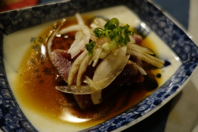 ここでカツオのたたきが登場しました!炭火焼と聞いていたので、カツオがでてきてかなりがっついてしまいました!こちらもおいしい〜〜!