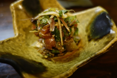 といって出していただいたのは、、、おおおお!アジはもちろんですが、まぐろなどいろんな魚で和えてくださっていました!うぉ〜〜〜〜!一口いただくと、、、おいしい〜〜〜!たまらないおいしさでした!