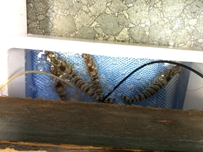 座敷の下においてある発泡スチロールの中に大きな車海老が!!!めちゃめちゃでかいです!ちょっと写真ではわからないかもしれないのですが、ほんと見たことがないくらい大きな車海老です。養殖だとここまで大きくさせれないでしょうね。はい、もちろん天然です!しかも広島の海にいます!広島にもこんなに大きくて立派な車海老がいるんですよ〜!