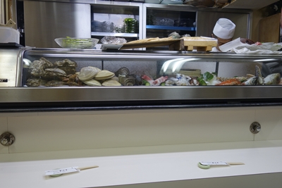 ショーケースをみると大きな岩牡蠣とハマグリが!どちらにしようか、、、迷いながらも、、、岩牡蠣にしました!大きな岩牡蠣が登場しました!ほんとに岩牡蠣ですね!中まで身がしっかりつまっていますよ〜!すばらしい!頂いてみるととってもおいしいです!
