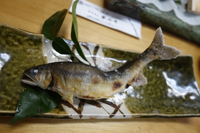 清流高津川の鮎とかかれていました!高津川ってどこなんだろう〜?と思いながら登場した鮎の塩焼きをいただいてみると、、、おいしい〜!季節を感じることができました!