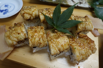 華ぶささんのおいしいお料理に感動しながら、最後の〆はやはり炙り寿司でしょう!この日は、鱧があるとのことでしたので鱧の炙り寿司をおねがいしました!