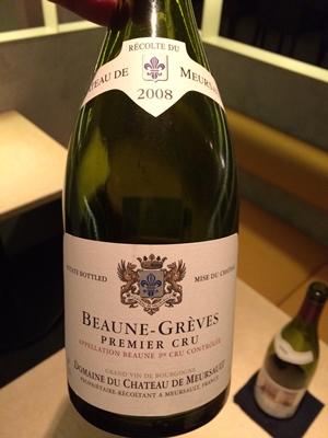 つづいて、チーズを出していただきまして赤ワインをお願いしました。まずは、BEAUNE LES GREVESというワイン!