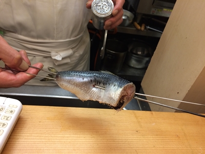 大将に見せていただくととってもおいしそうで立派ないわしでした!こんなに大きなのは久々にみましたよ〜!登場したいわしをいただくと、、うん!とってもおいしい〜〜〜!たまりませんね〜!